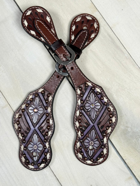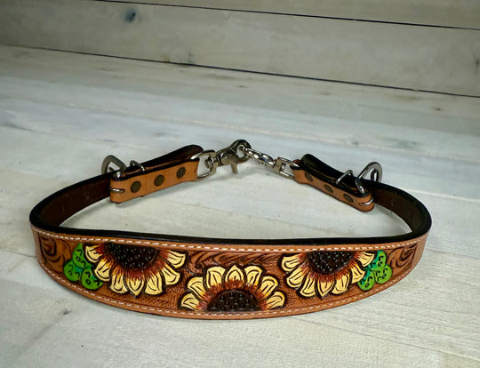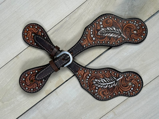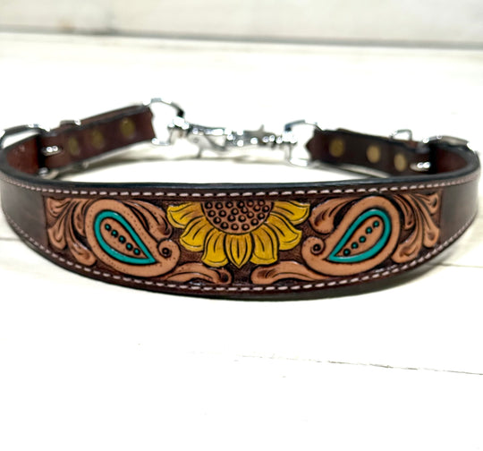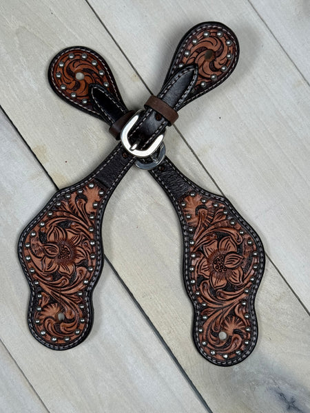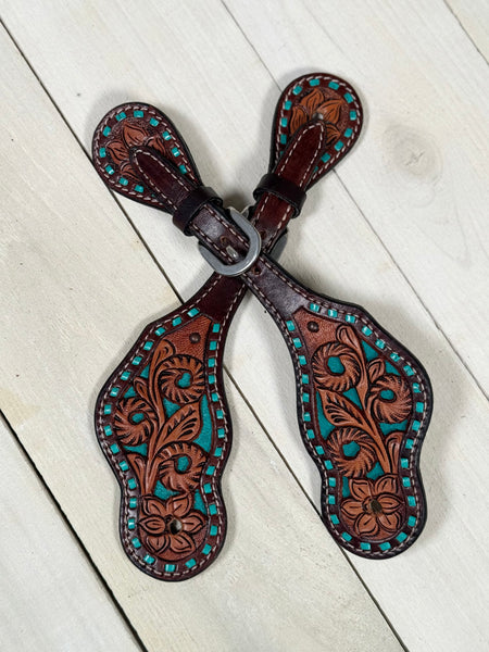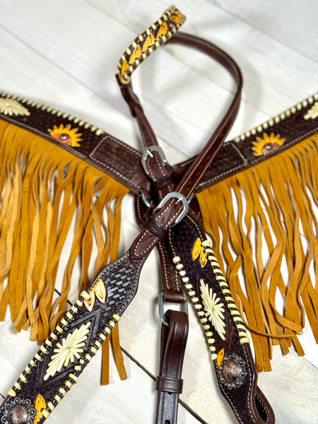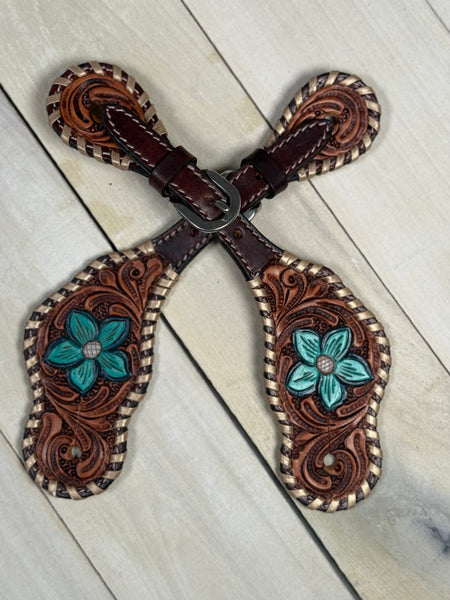 Turquoise Feather Sunflower Tooled Studded Tack Set