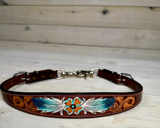 Turquoise Painted Tooled Wristlet Leather Keychain
