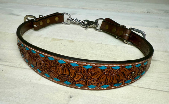 Vegas Leather Tooled Turquoise Accent Woman’s Belt