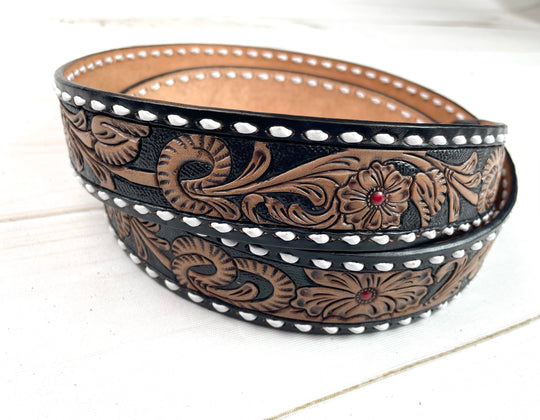 Vegas Desert Sunflower Tooled Leather Woman’s Belt