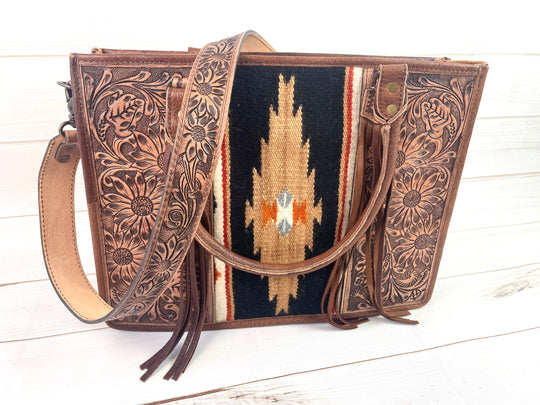 Southwest Spring Floral Tooled Laptop Tote (4 Leather Options)
