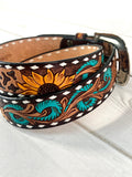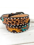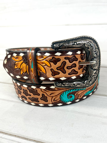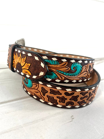 Leopard Sunflower Tooled Leather Woman’s Belt
