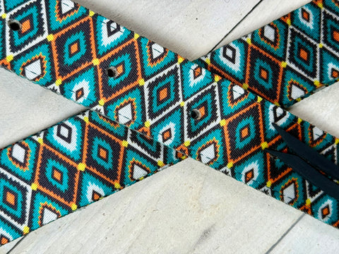 Teal Brown Orange Diamond Pattern Cinch Strap Set