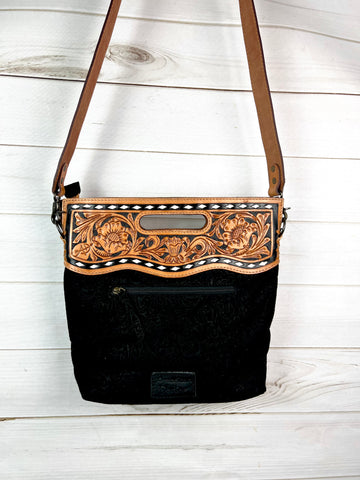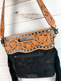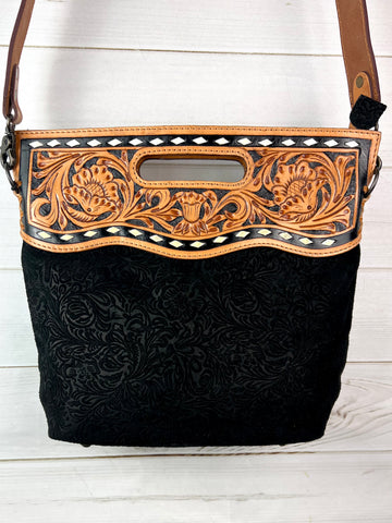 Black Canyon Handle Cross Body Bag - Pattern Suede Brocade Design
