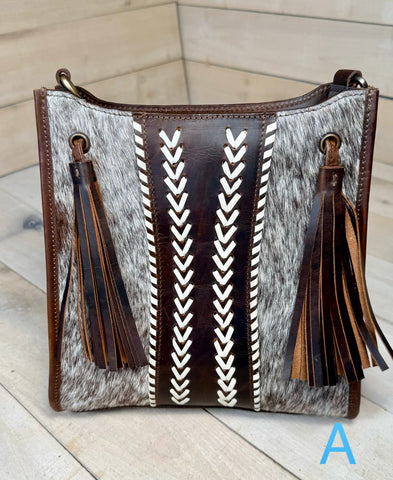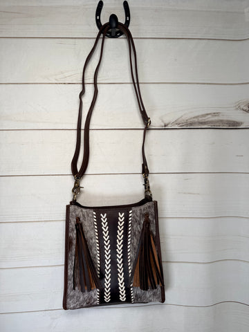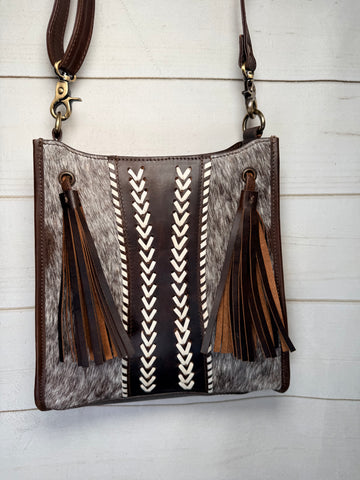 Whipstitch with Tassel Hide On Crossbody Handbag
