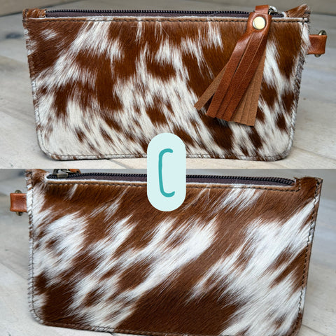 Crafted from genuine hair-on cowhide, no two clutches are alike, ensuring you get a one-of-a-kind piece with every purchase. Measuring 4.5" tall by 8" wide, it’s perfectly sized to carry your cash, cards, keys, and a few must-have extras. The interior zipper pocket adds extra security, keeping everything in place whether it’s in your hand or tossed in a tote.