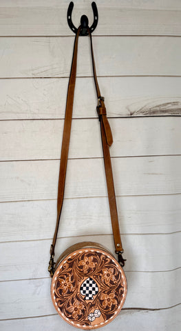 The front features intricate floral tooling, hand-carved by skilled artisans, while the unique cowhide base adds bold Western character—ensuring no two bags are exactly alike. Whether you're heading to the rodeo, a concert, or just tackling the day, this bag is the perfect blend of statement style and everyday function.