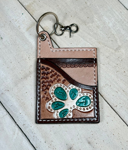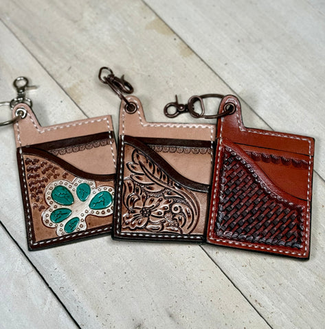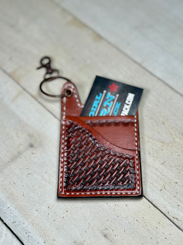 Card Holder Key Chain blends durability, functionality, and western style in one compact accessory. Made from premium medium oiled leather, it features detailed basketweave tooling for a classic textured look.