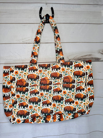 A prairie-inspired beauty with majestic bison and bright sunflowers, this tote blends power and charm for a look that’s wild and Western. Durable and spacious, it’s a stunning everyday companion for adventures big and small.