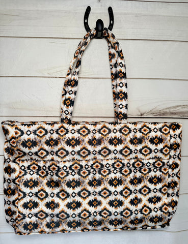 Make a bold Southwestern statement with this vibrant Aztec Sunstone print. Its head-turning pattern meets everyday practicality—ideal for hauling essentials in style.
