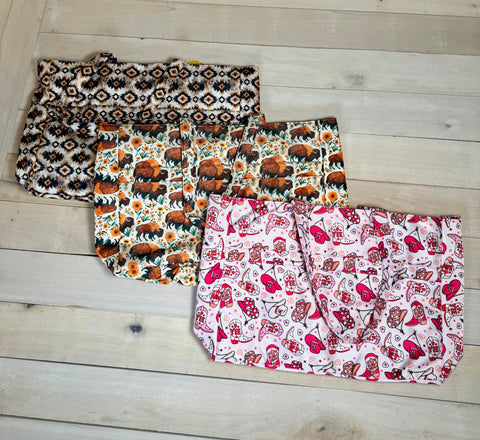 Travel in style with the Travel Tote Collection, featuring three bold and beautiful prints to match your cowgirl spirit. Whether you're heading to the barn, a weekend rodeo, or just out for a day in town, these totes are as functional as they are fun.