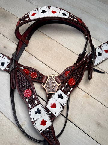 Browband headstall with tooled & hand-painted poker theme