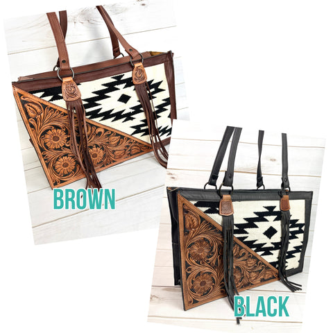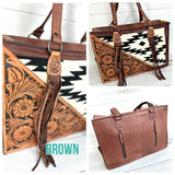 Woven wool and tooled leather design - choose from black leather or brown leather