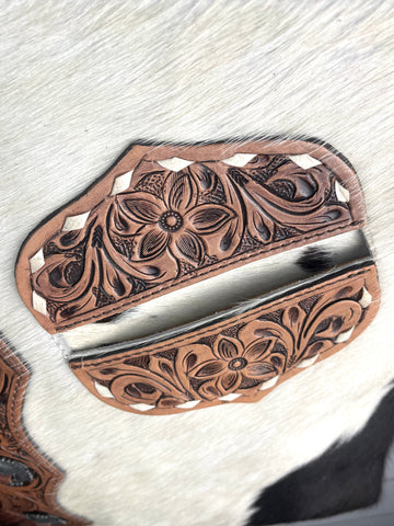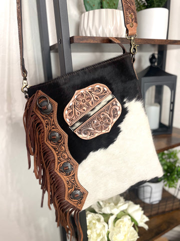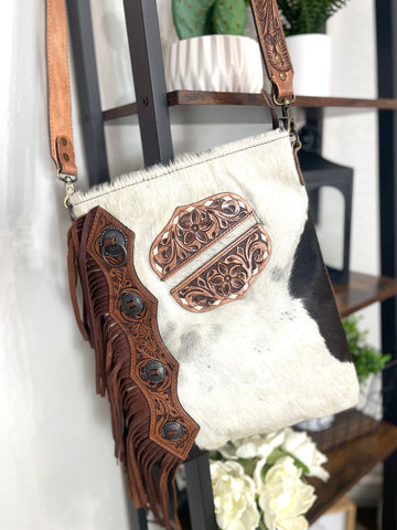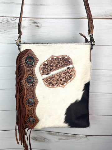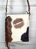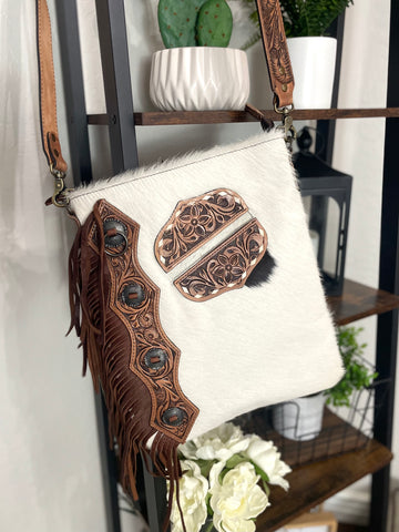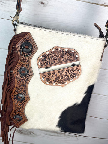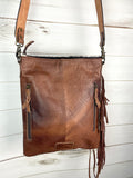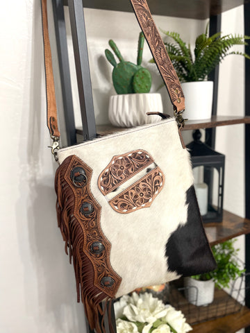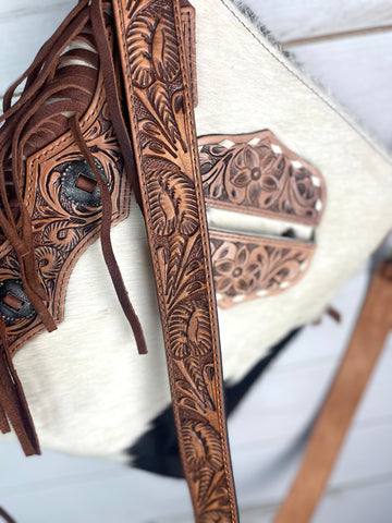 La Paz Hide Tooled Pocket Side Fringe Bag
