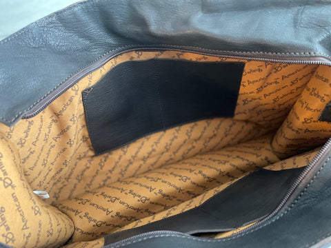 Concealed carry zipper pockets in leather. Leather pockets on each side.