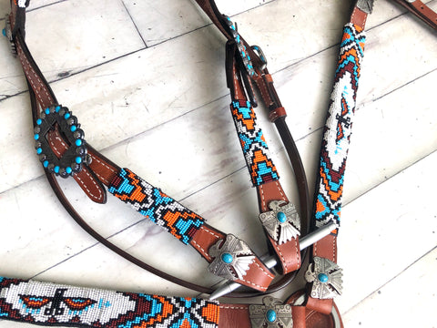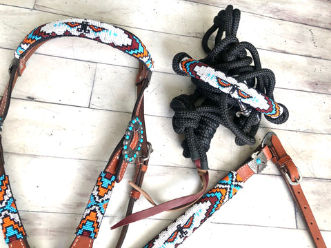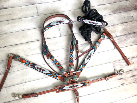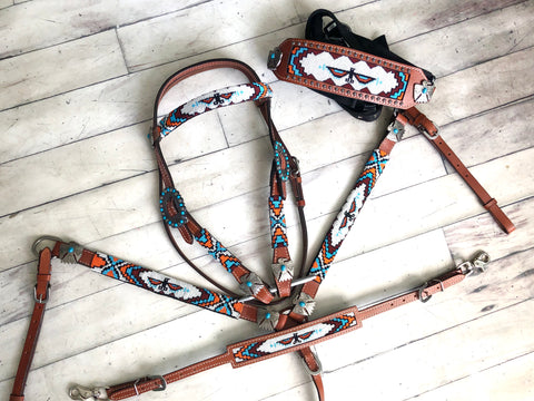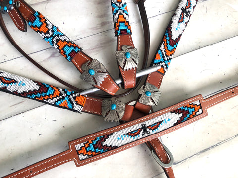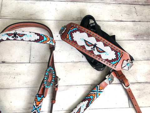 Thunderbird - Firebird pattern beaded woven and wrapped on leather