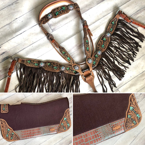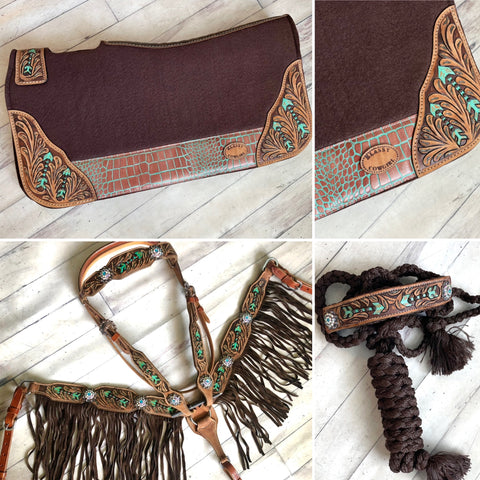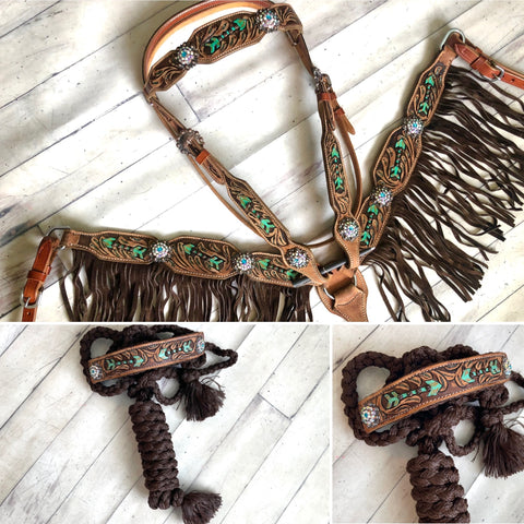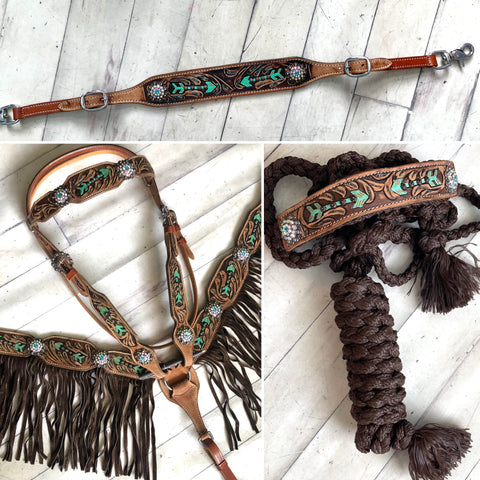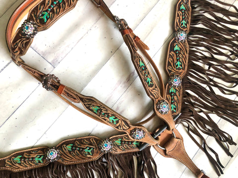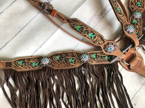 Tooled Mint Arrow Tack with Chocolate Fringe