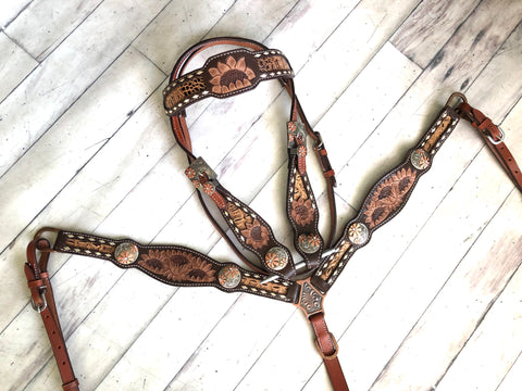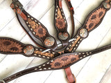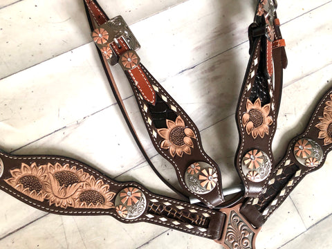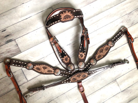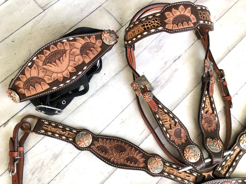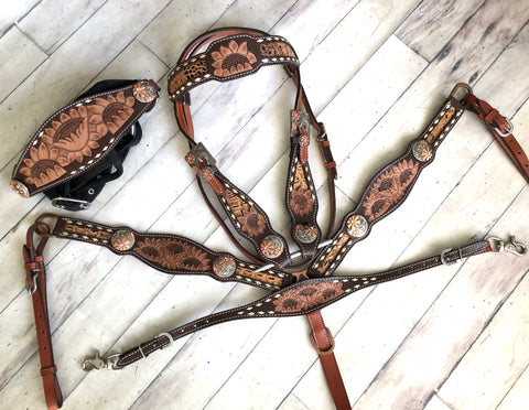 Tooled Sunflower Buckstitch with Alligator Pattern Tack Set