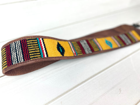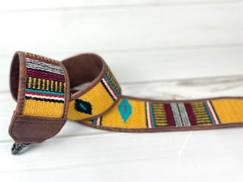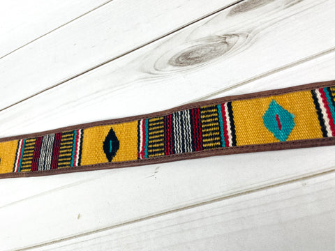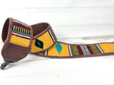 Yellow Turquoise Wool Pattern Over Leather Crossbody Handbag Strap